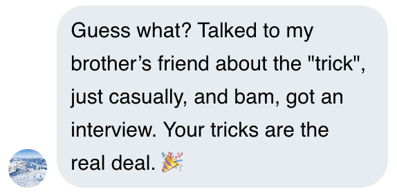 Here’s another Job Hunter with the Insider Secrets, who started using this Template + New Approach…
