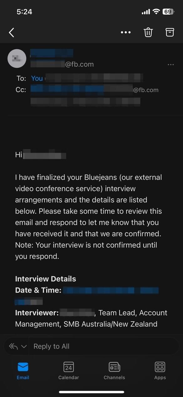 ...But once done - I’m able to copy and paste and see interviews lining up in the coming days.